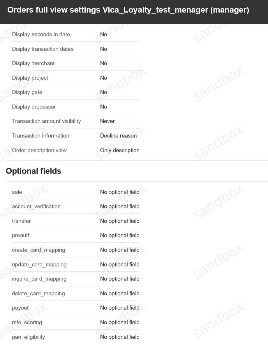 Manager employees can browse transactions, configure processing solutions and download various reports via Cyber UI. It is available at production environment and at sandbox environment.