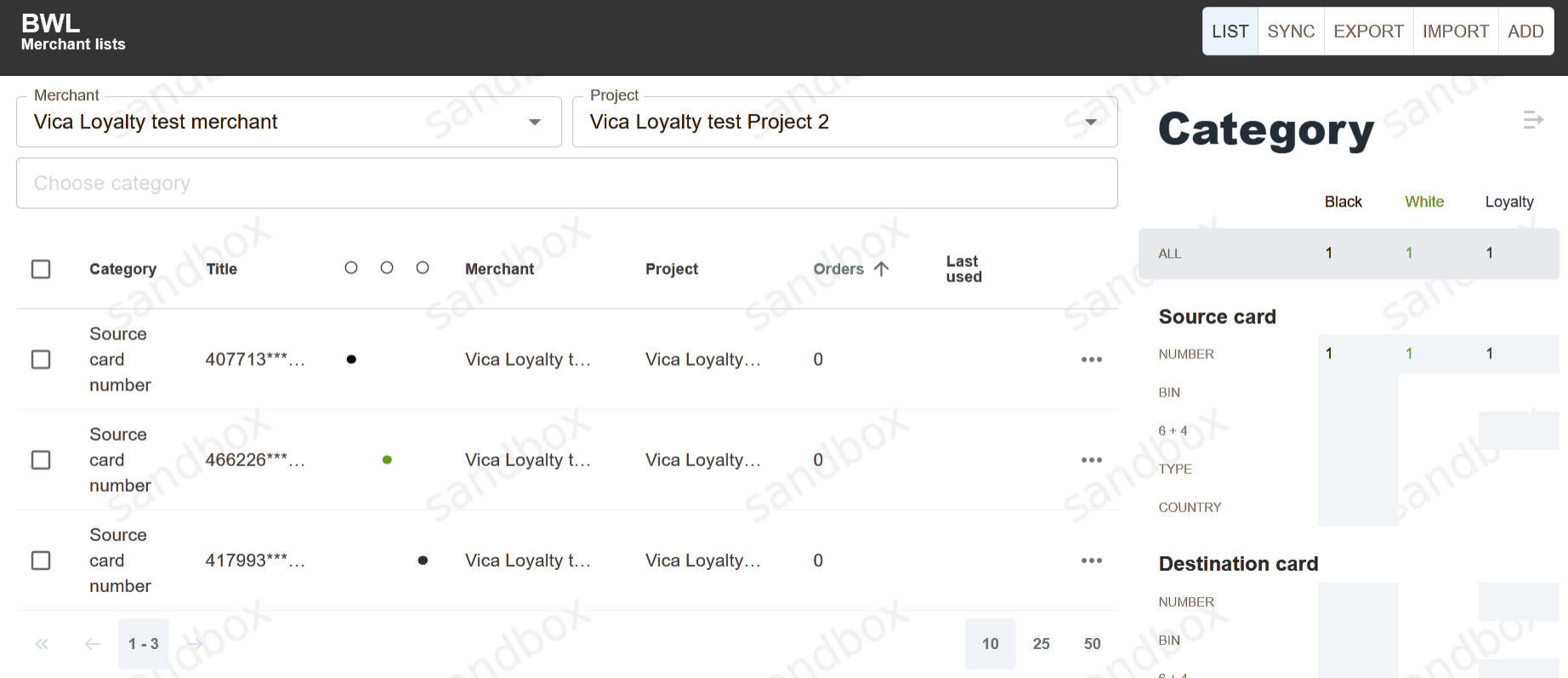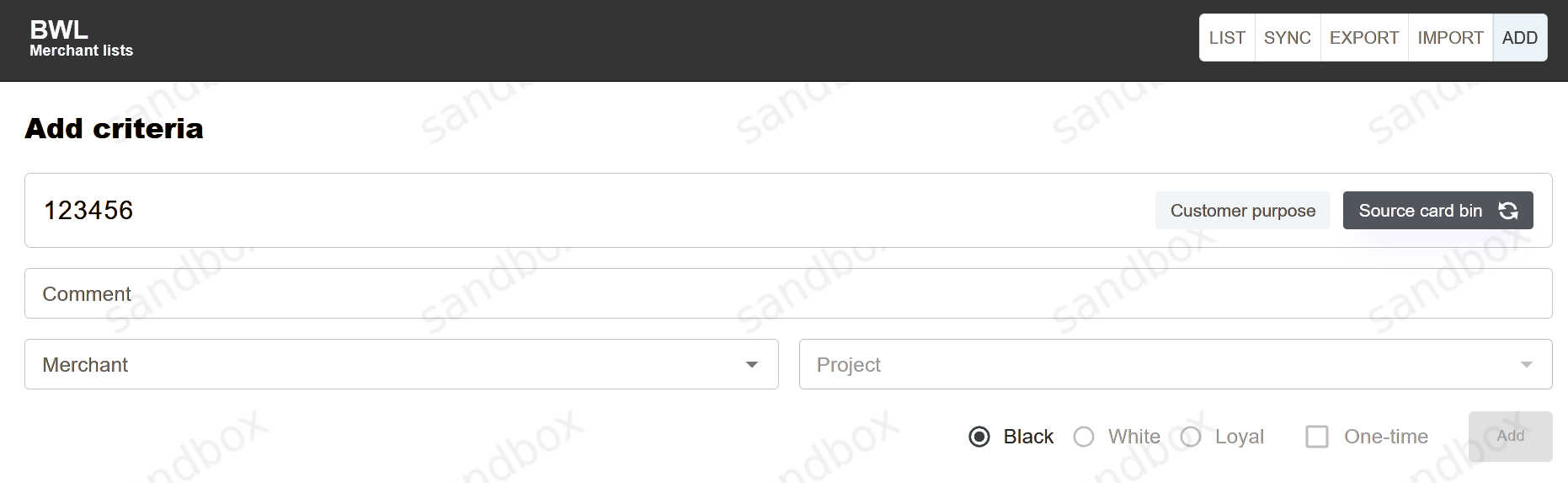 There are 3 types of access control lists, which work as filter checks in Payment Gateway. Lists are being checked while processing the transaction when the respective filter gets applied. BWL screen is designed to manage white, black and loyalty customer lists. This screen is located in “Tools” -> “Black & White lists”. It makes the process of putting the transactions’ attributes to respective lists faster and easier. It also has quick search which helps to find the exact transaction attribute added previously.