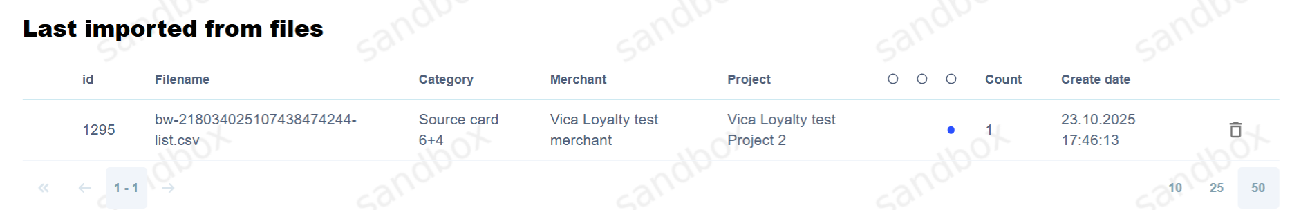 Imported files displayed in a separate table and sorted by ID in the “Last Imported from Files” section.