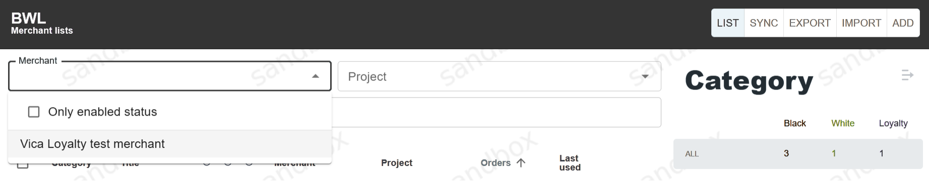 • Select Merchant or Manager to switch between adding BWL list to Merchant or Manager.