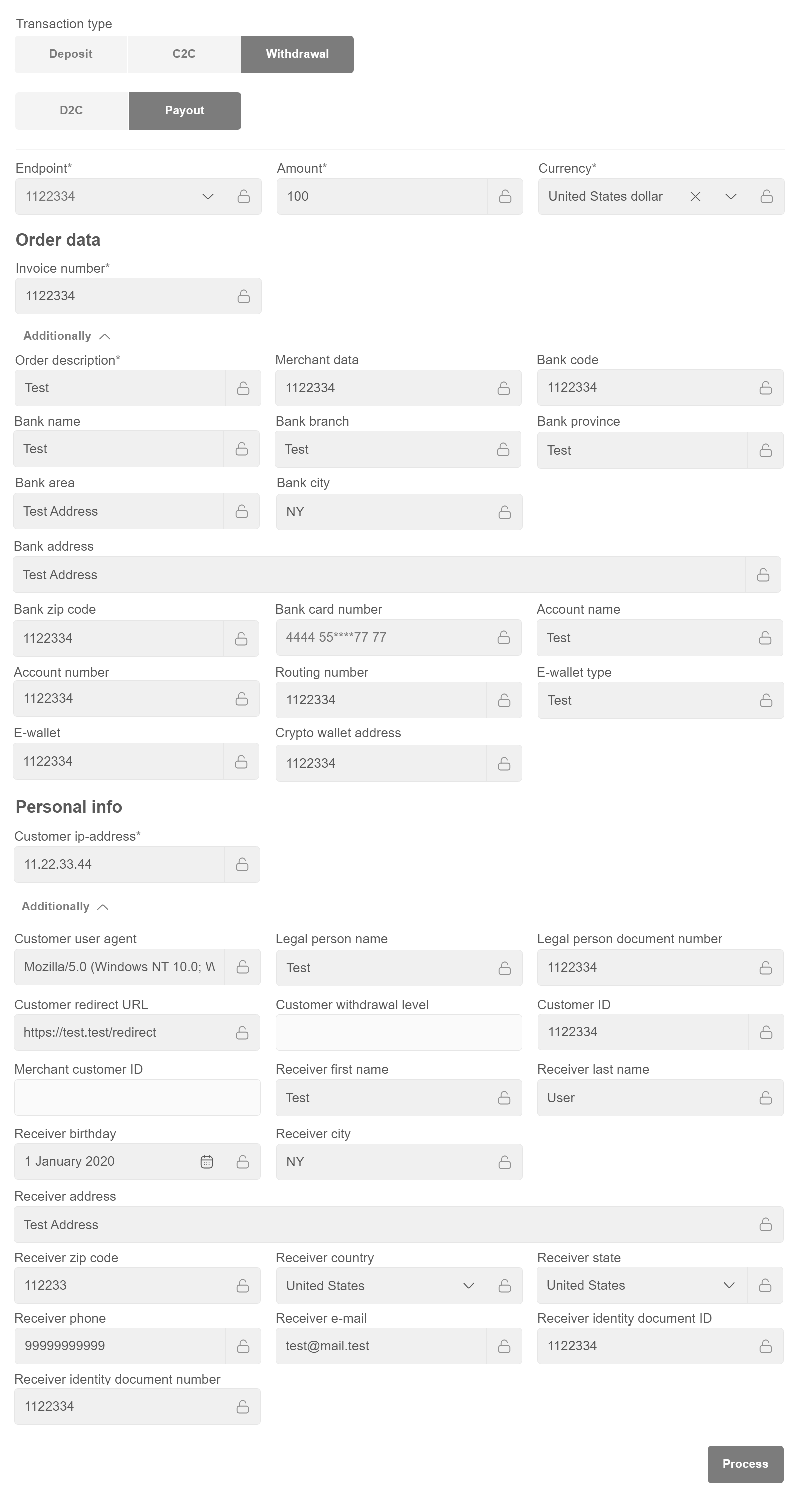 When filling in the Customer ID field, Personal info (First name, Last name,City, Address, Zip code, Phone, E-mail, Country) sections will be filled in automatically.